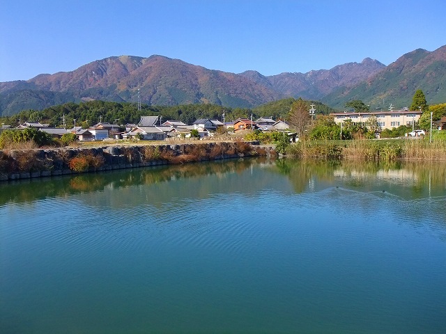 朝から晴天に恵まれました。本日常願寺さんへ所要が有り行く途中で山と池が映えている事に気付きカメラにおさめてみました。鈴鹿山系の中腹まで紅葉となり冬まじかを感じる季節となってきました。