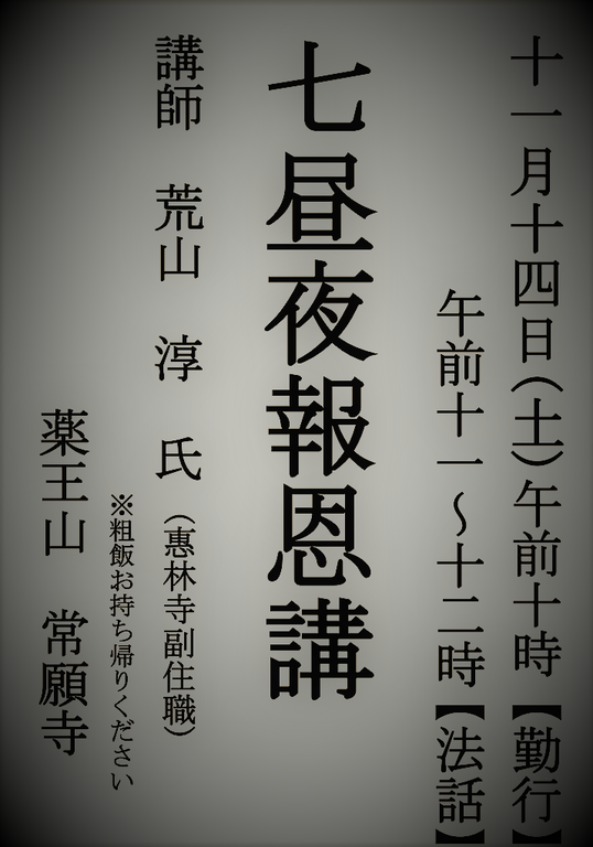 七昼夜報恩講に万障繰り合わせの上お越しください。