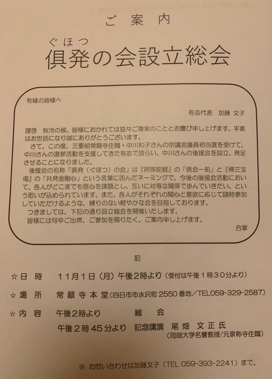 秋季永代経のご案内申し上げます。